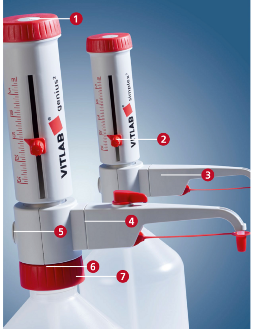 Flaschenaufsatz-Dispenser VITLAB® genius² und simplex²