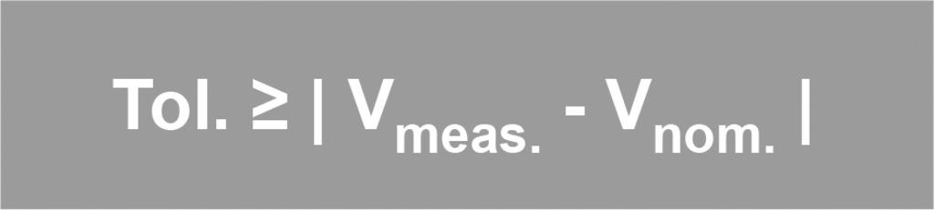Die in den entsprechenden Normen angegebene Toleranz (Tol.) gibt die maximale zulässige Abweichung des Gerätes vom Sollwert an.