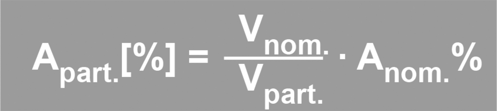 In der Regel sind R und VK auf das Nennvolumen (VN) bezogen. Diese Angaben in % müssen für Teilvolumina (VT) umgerechnet werden. Dagegen erfolgt keine Umrechnung für die Teilvolumina, wenn R und VK in Volumeneinheiten (z.B. ml) angegeben sind.